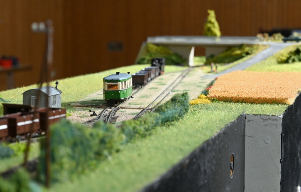 Nur wenige Menschen haben die Kleinbahn von Philippsheim nach Binsfeld mit Zwischenstation in Herforst noch selbst erlebt. Denn die Bahn diente ab dem 6. Mai 1900 vor allem dem Güterverkehr, transportierte Ton, Holz und Sandsteine zur Staatsbahn nach Philippsheim oder brachte von dort Baumaterialien, Kunstdünger und Briketts. Der Personenverkehr spielte nie eine große Rolle und wurde bereits 1936 eingestellt. Von 1946 bis 1950 konnte man in Güterwagen mitfahren, die mit Bänken ausgestattet waren. Der letzte Güterzug dampfte am 8. August 1965 nach Philippsheim hinunter. Der Bitburger Modellbahner Herbert Schneider (Modellbahnfreunde Schweich) und Helmut Reichelt (Modelleisenbahnclub Lahnstein-Koblenz) bauen seit 2017 alle Stationen und ausgewählte Streckenabschnitte dieser Kleinbahn im Maßstab 1:87 nach. Grundlage für die originalgetreue Nachbildung der Haltestelle Herforst waren Zeichnungen und Beschreibungen aus Originalunterlagen der Bahn. Leider ist bislang kein einziges Foto dieser Station aufgetaucht. Am Samstag, den 28. März (14 bis18 Uhr), und am Sonntag, den 29 März, ist die Bahn von 11 bis 17 Uhr im Betrieb zu erleben. Interessierte werden gerne angeleitet, damit sie die Weichen in Herforst selbst stellen, rangieren oder den Posten des Lokführers übernehmen können. Dieses „Beschäftigungsangebot“ richtet sich an junge wie auch junggebliebene Eisenbahnfans. Aus räumlichen Gründen kann nur der Abschnitt Herforst bis Binsfeld, also nicht die ganze 15 Meter lange Anlage gezeigt werden. Daneben gibt es den Nachbau der Moselbahn Station Mülheim von Rainer Frank und die Heimanlage von Herbert Schneider zu sehen.